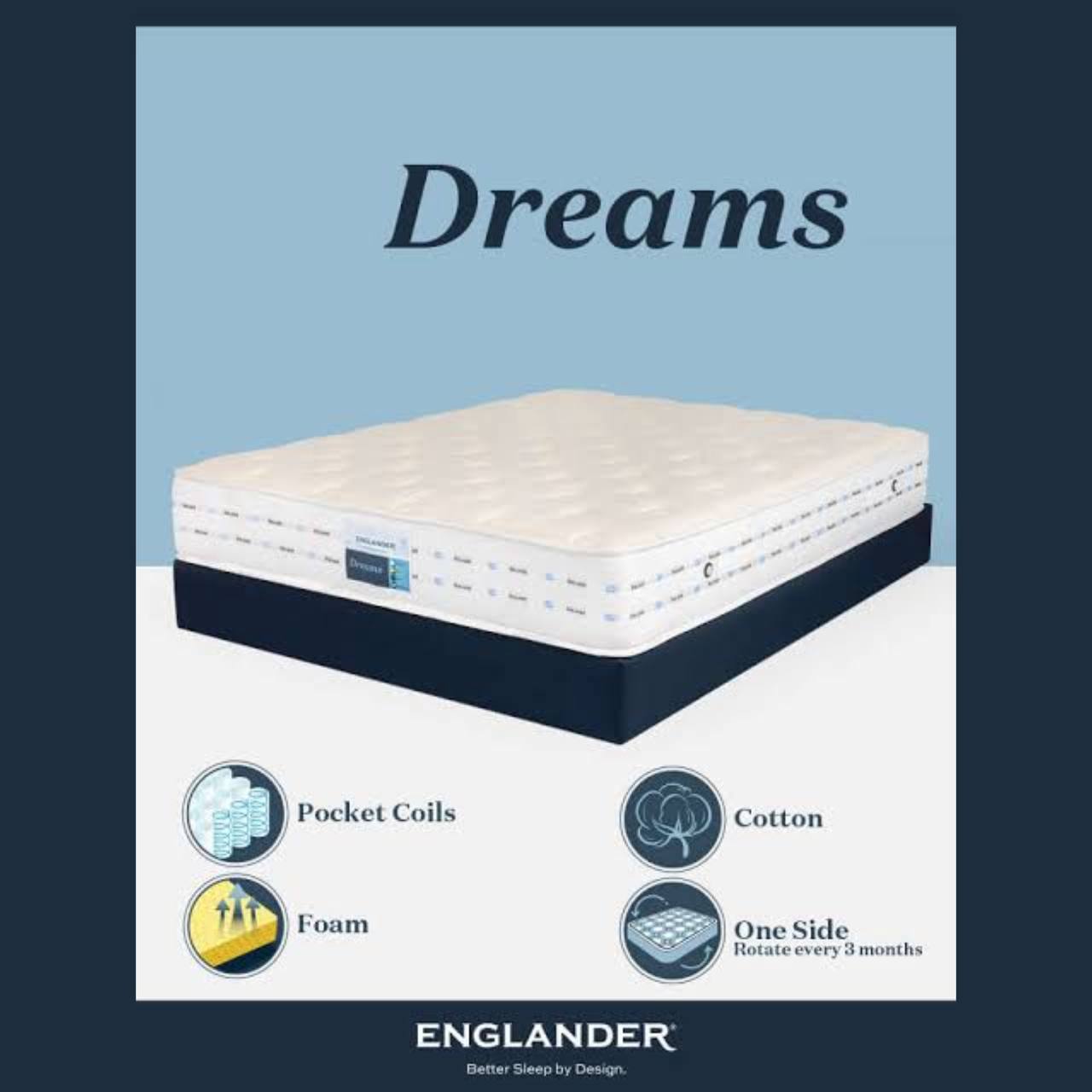 •مرتبة انجلندر دريمز شاسية من السوست المنفصلة المغلفة التى تساعد على تقليل كلا من الحركة و الشعور بالاهتزاز فى حالة نوم فردين على المرتبة.